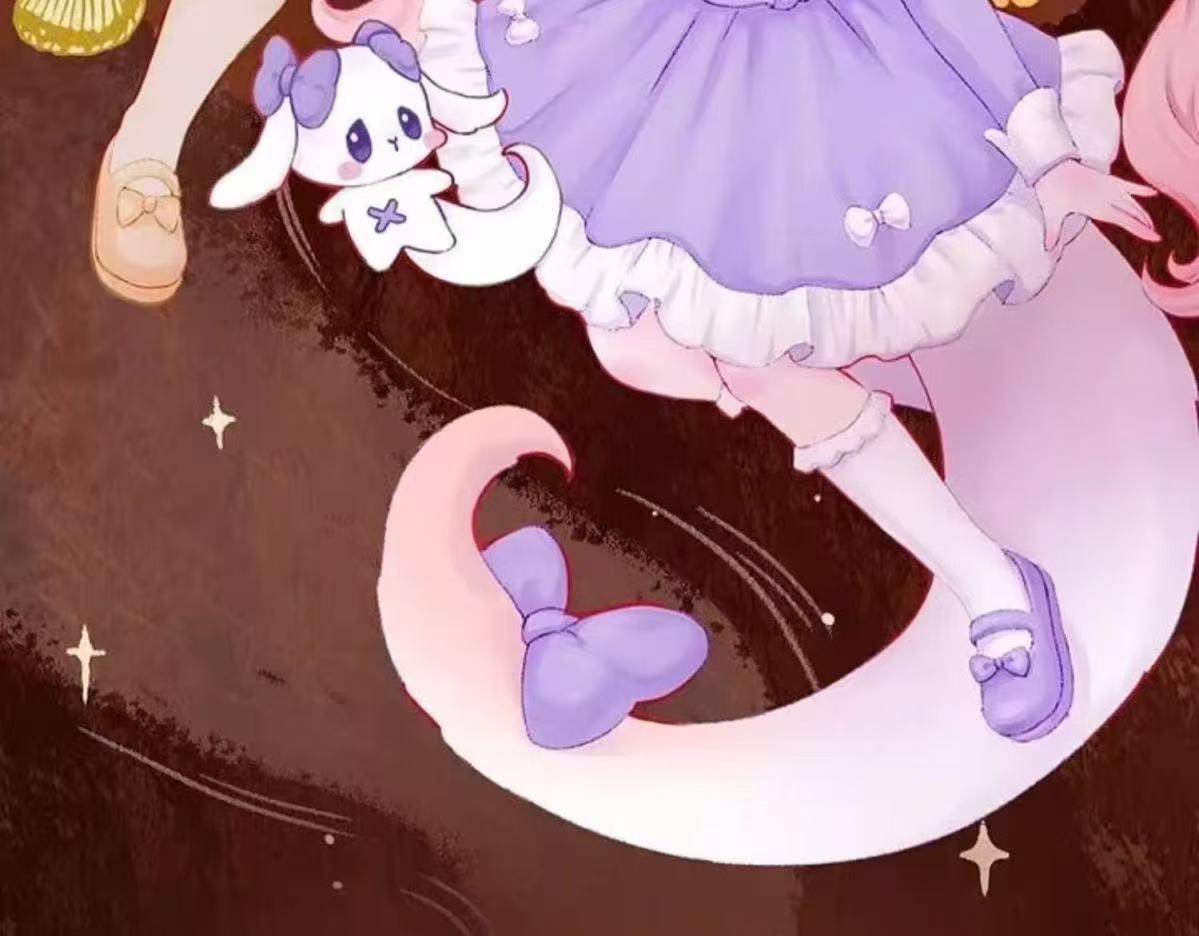 - 白い衣装のキャラクターはピンクの髪型と大きな目を持ちます。