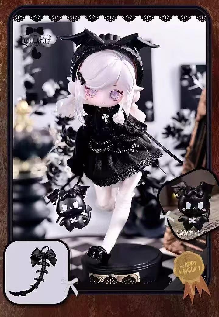 1/12スケールのルル・リン物語BJD可動式ブラインドボックスフィギュアです。2つの異なるデザインが含まれています。左側は黒い衣装を着たキャラクターで、右側は白い衣装を着たキャラクターです。両方とも可動式で、ポーズを変更できます。
