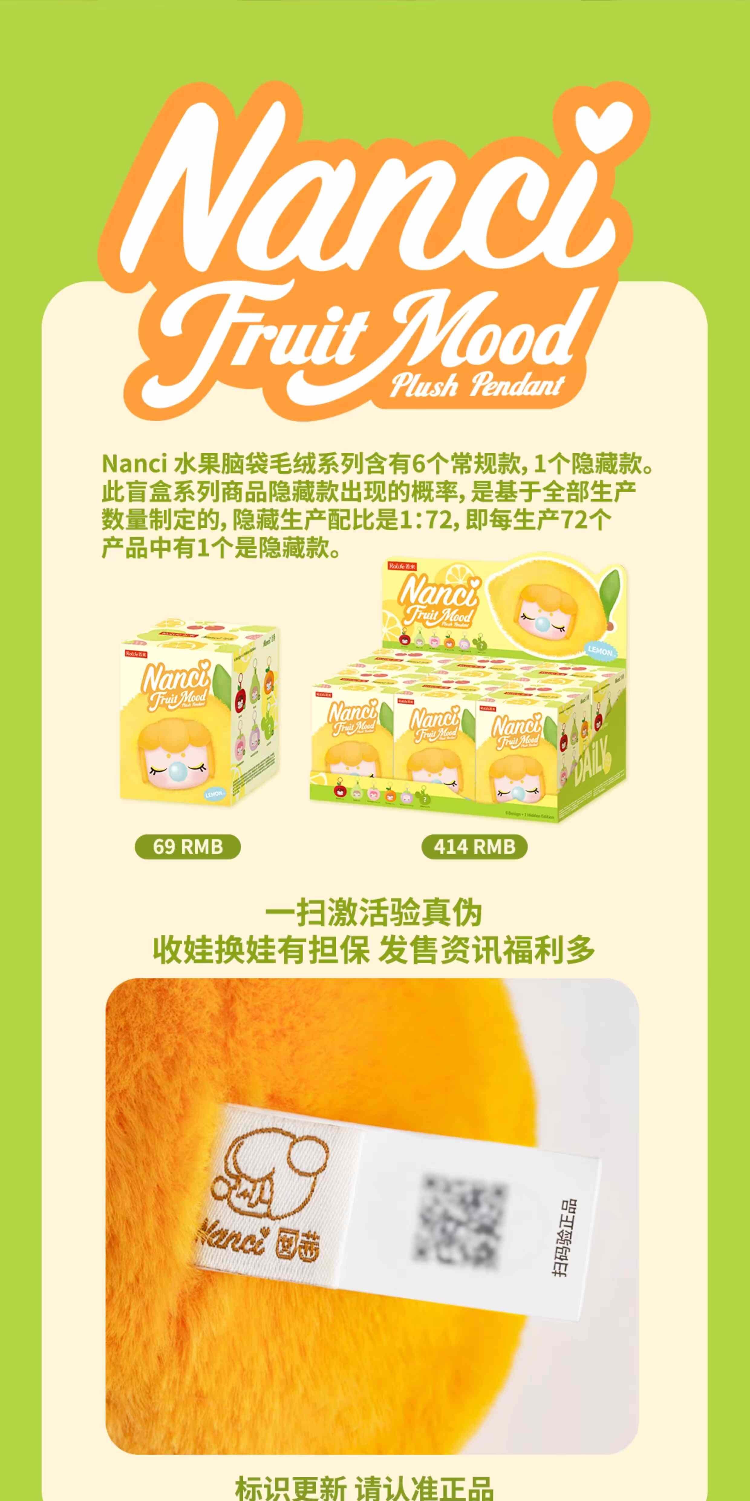 rolife Ruolai Nanci フルーツヘッド ぬいぐるみ ブラインドボックス 人形 キーチェーン おもちゃ 女の子への誕生日プレゼント